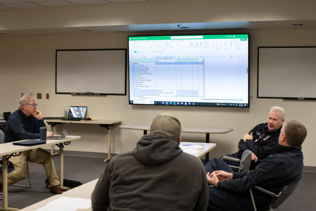 Quinn Hutson, Principal, leading a Study of Program Needs discussion with Fire Department personnel
